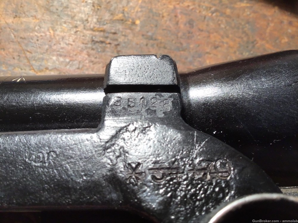 L42A1 Scope bracket showing rifle serial number on. Bracket made by Rose Brothers (“JG” mark) in England in WWII. Previous rifle serial number that it was assigned to has been proterly cancelled and new serial number (without letter prefix) added.