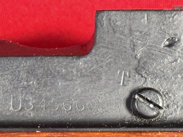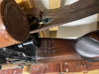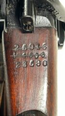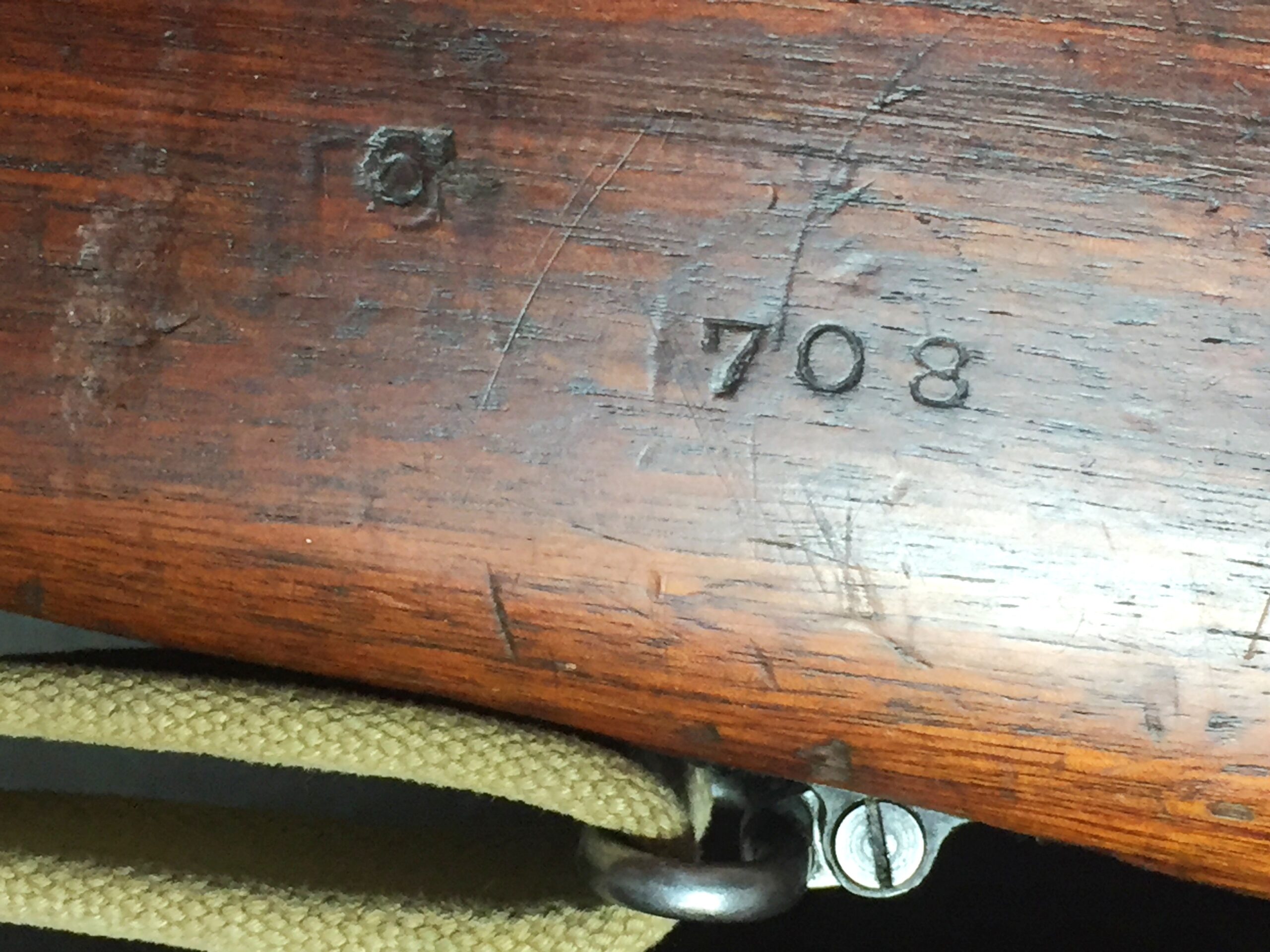 L42A1 showing scope serial number stamped on wrist of the butt. The WWII inspection markings to right of bolt are partyl visible.
