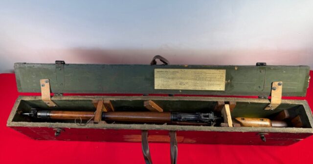 $20,000 CAD L42A1 sniper rifle with COMPLETE kit. Matched set. includes L42A1 transit chest, manuals, chamber cleaning stick, slings (M1907 and L8 synthetic), 1955 dated No. 8 Mk. I scope case (numbers do NOT match this set), cleaning kit, Scout Regiment Telescope in is leather case, rare original "J" bracket for IWS and the very rare lens brush and even more rare plastic bottle for it.