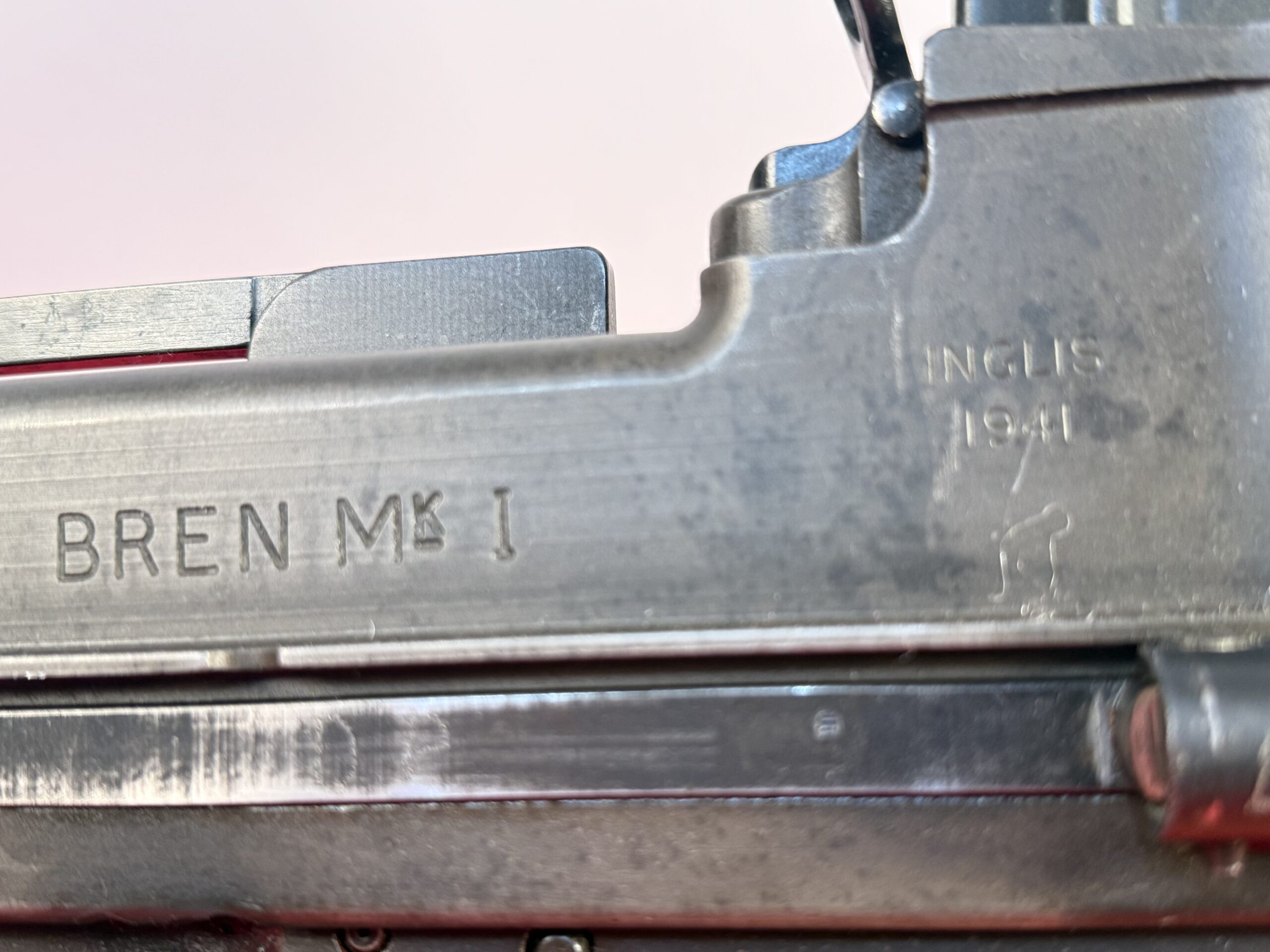 $5,950 CAD Deactivated Inglis BREN GUN Mk. I with all of the earliest features. Cock and click. Magazine deactivated and can be removed. Bareel cannot be removed as this Bren is permanently deactivated. It has early handle under butt and top shoulder strap. Early extending legs bipod. Dovetail on left sidewall for special sight. Dial rear sight.
