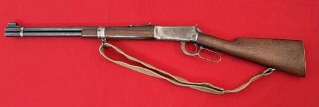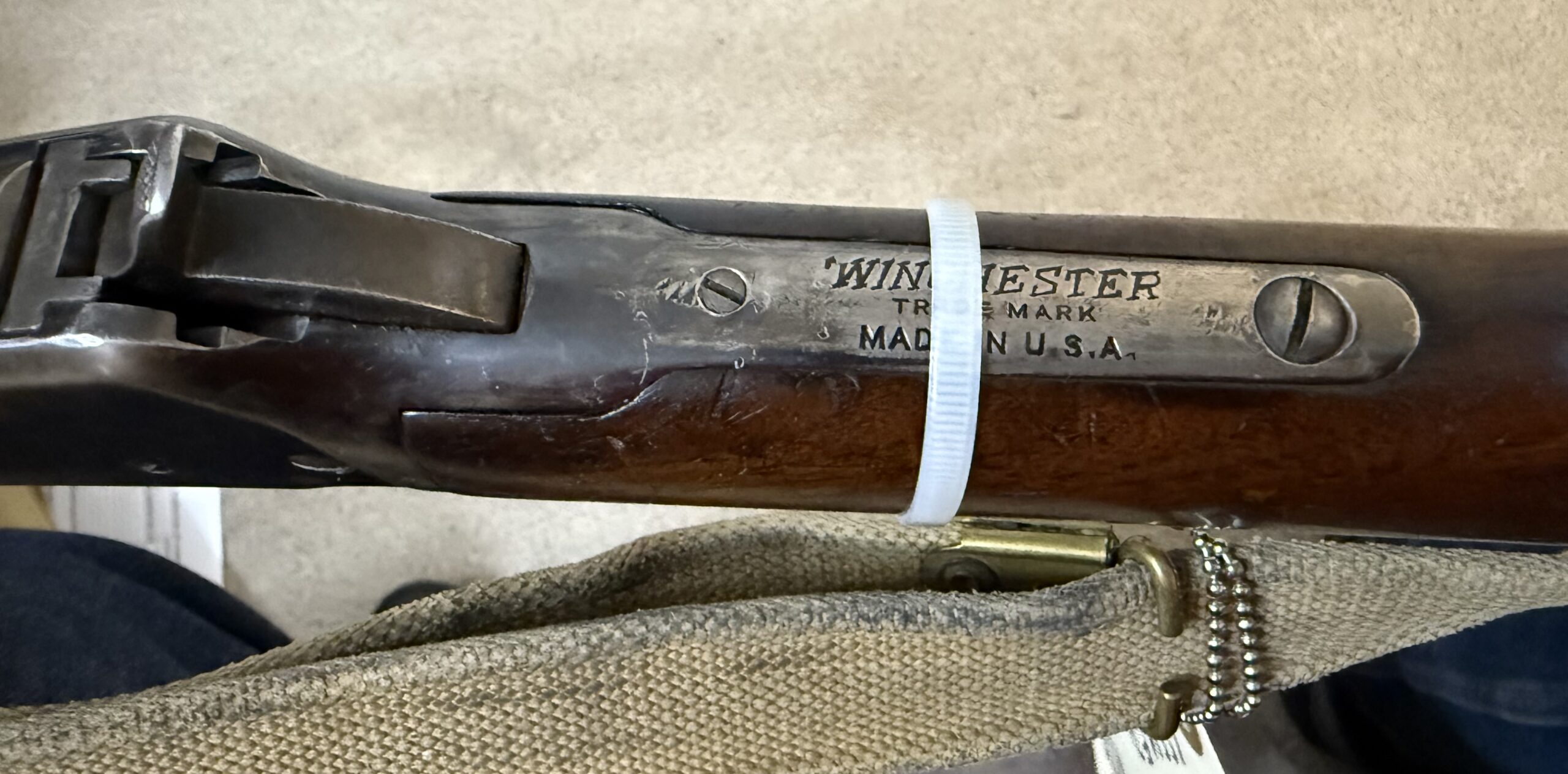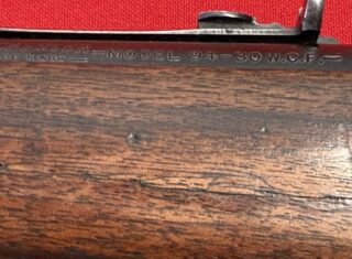$2,500 CAD Winchester Model 1894 circa 1943 production. Canadian Army issue marked. C/|\ marked on left side - fore end, receiver and butt. Marks in wood are faint, but are there. Crack on left side of fore end. Sling and sling swivels added by the army. Issued to Pacific Coast Militia Rangers ( PCMR P.C.M.R. ) in WWII. Standard Winchester .30/30 calibre. Hard to find as only issued in British Columbia and a little bit in the Yukon I believe. At the end of the war they were sold to the Rangers. A Ranger could buy his rifle for $5. Thus many remained in use for the next 70+ years.