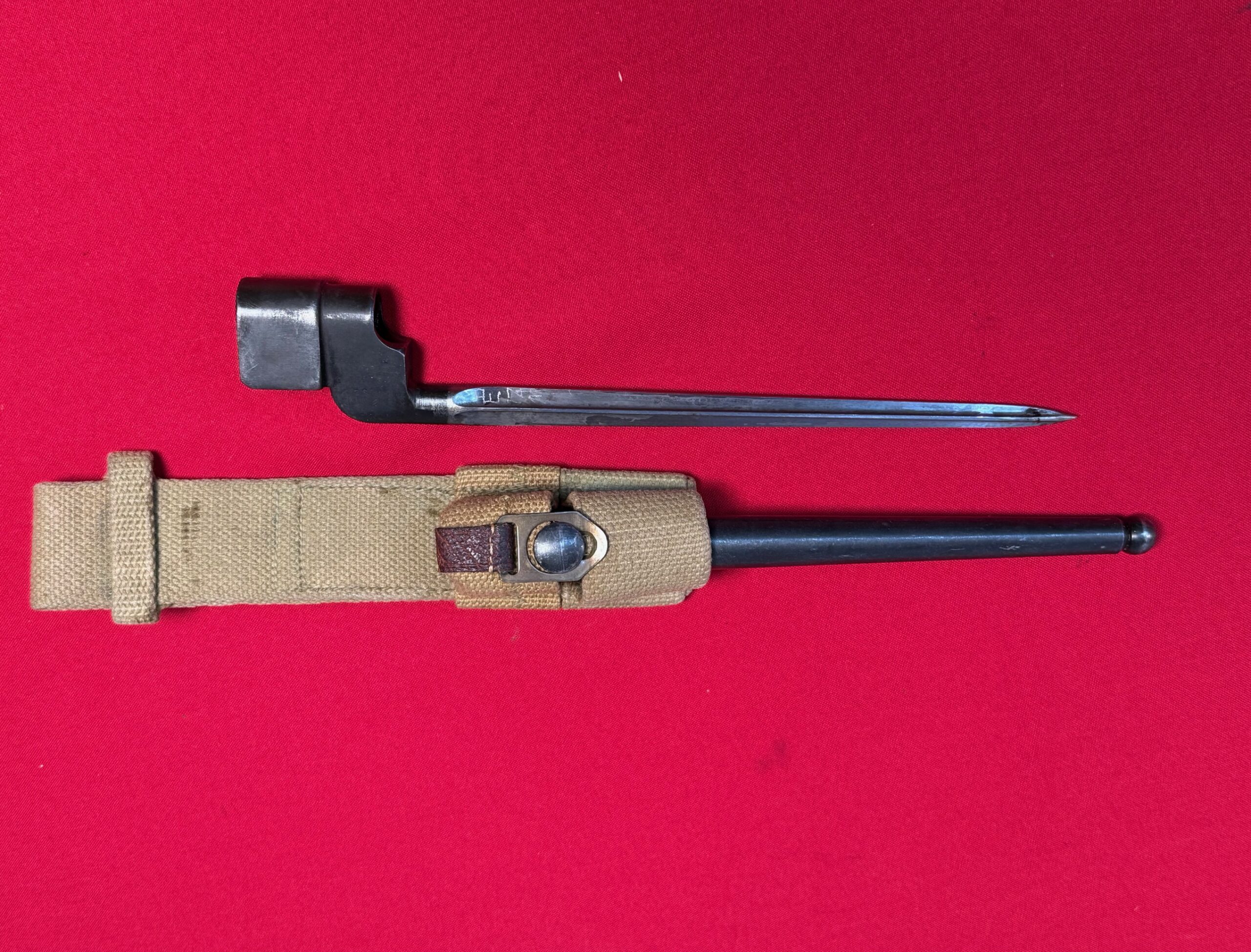 Comes with 1941 Canadian sling and extremely rare Canadian issue marked C/|\ No. 4 Mk. I "Cruciform" bayonet made by Singer in the UK. (From LCol Bernie Nehring's Collection, he acquired a few from Downsview, ON, many years ago).