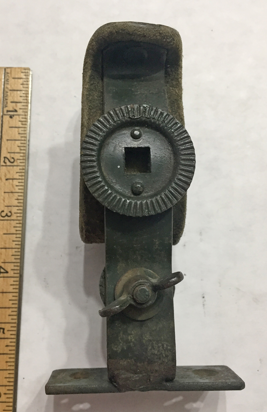 A rare original WWII SAS, Airborne or LRDG weapons clip for jeep as mounted on a front fender. Made from a converted British bicycle weapons clip.